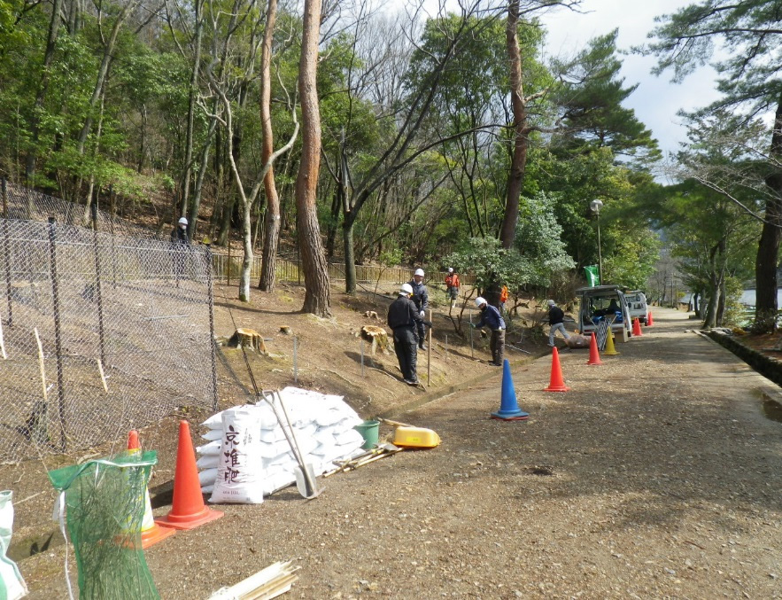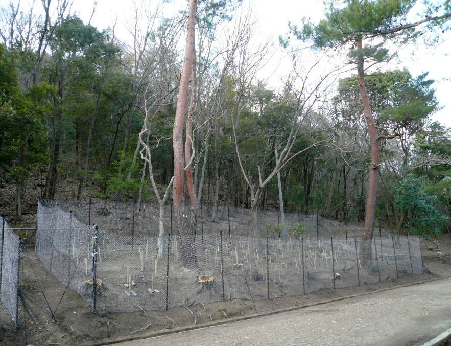 寄付の内容といたしましては、獣害防止柵の設置、福島県産のサクラならびに京の里山に実在する樹木の苗木の植え付けです。その内、カラコギカエデの苗木15本は京都学園大学様の寄贈です。
