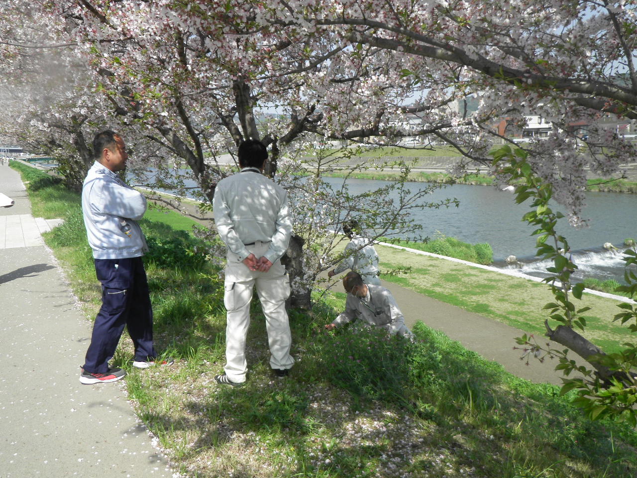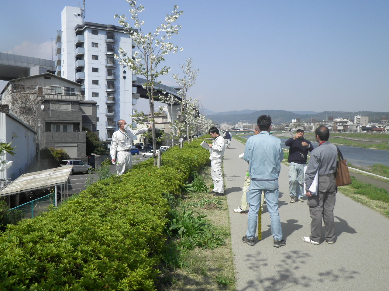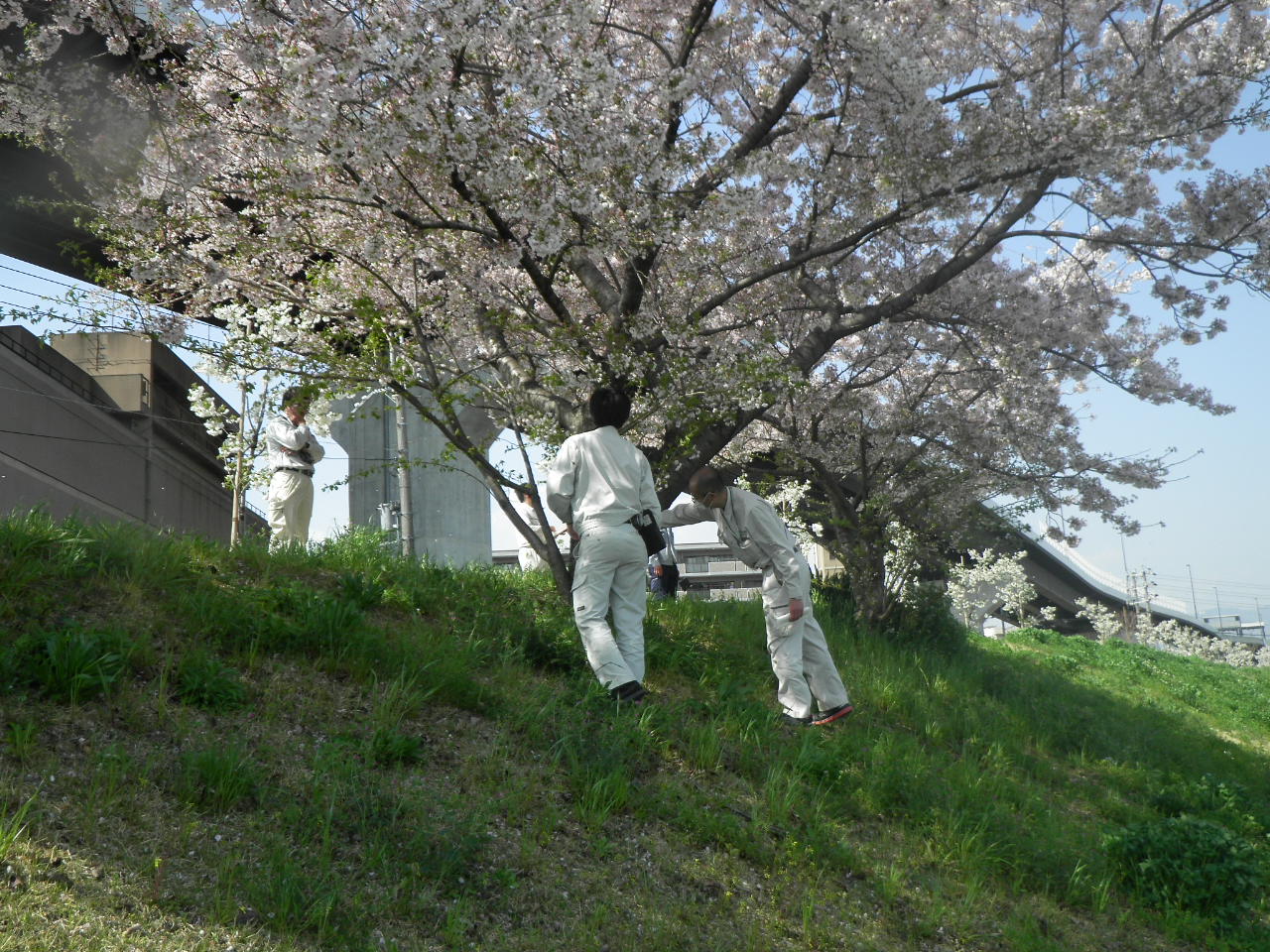 4月14日に、京都府京都市南区上鳥羽の火打形公園と、小枝橋公園と、勧進橋下流左岸にあるさくら並木の樹木調査を実施いたしました。