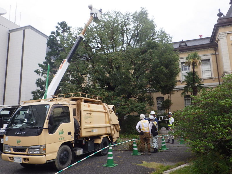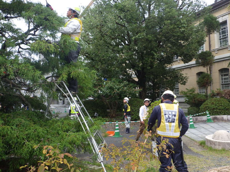 京都府庁 剪定ボランティア 2019年12月16日2019年12月16日 ニュース 協会事業 10月26日(土)に京都府庁で行われた「観芸祭」の初日に、旧本館前で剪定作業を行いました。 協会認定の「公園樹管理士」が、樹木が健全に成長し、強風などで枝や幹が折れないように、そして明るく美しい風景になるように剪定を行いました。 剪定前のクスノキ 剪定後のクスノキ 剪定前のヒマラヤスギ 剪定後のヒマラヤスギ 11月には、剪定ボランティア活動に対して、京都府より感謝状を頂戴いたしました Tweet