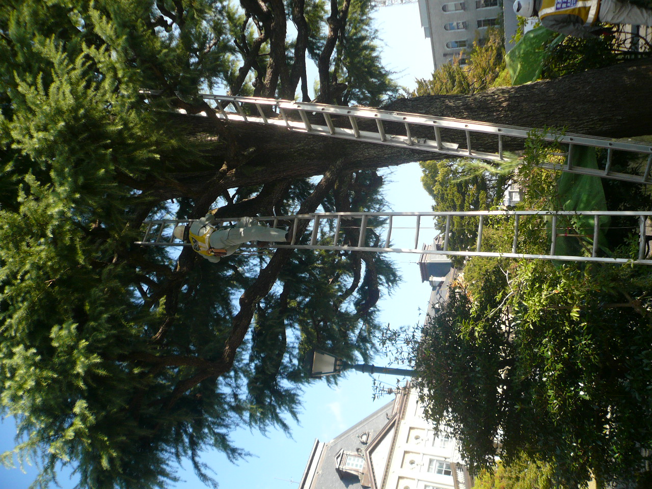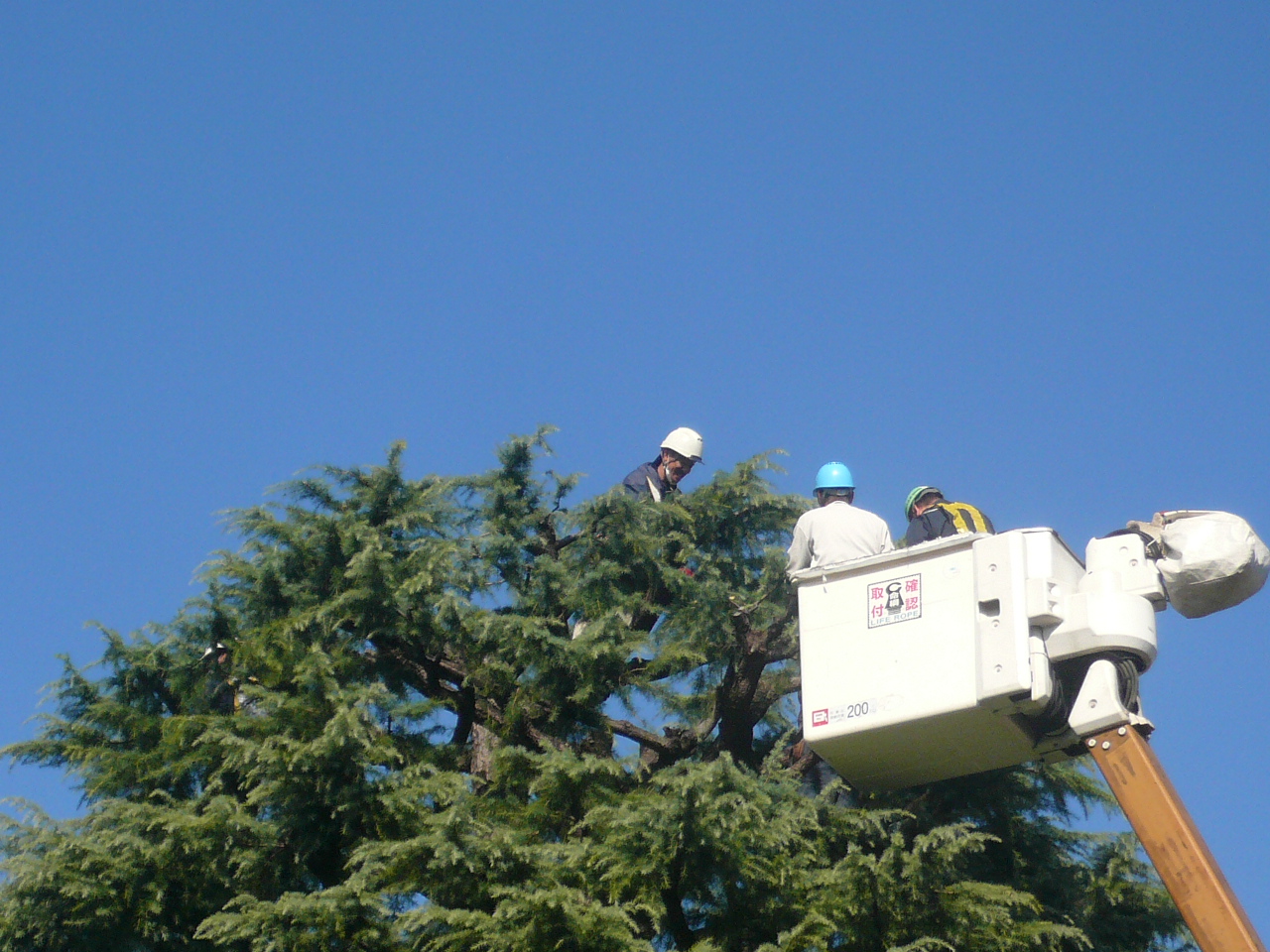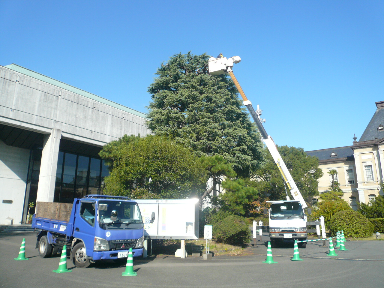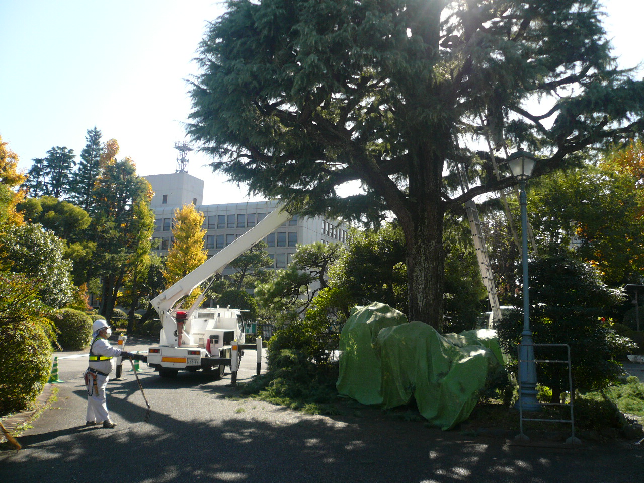今年も府庁旧本館南西側の大きなヒマラヤスギを剪定します。