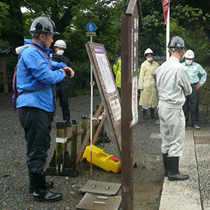 7月10日(金)、京都御苑管理事務所、(一財)国民公園協会のみなさまと合同で、止水板の設置訓練を行いました。 2016年9月に、京都御苑管理事務所と「災害発生時…